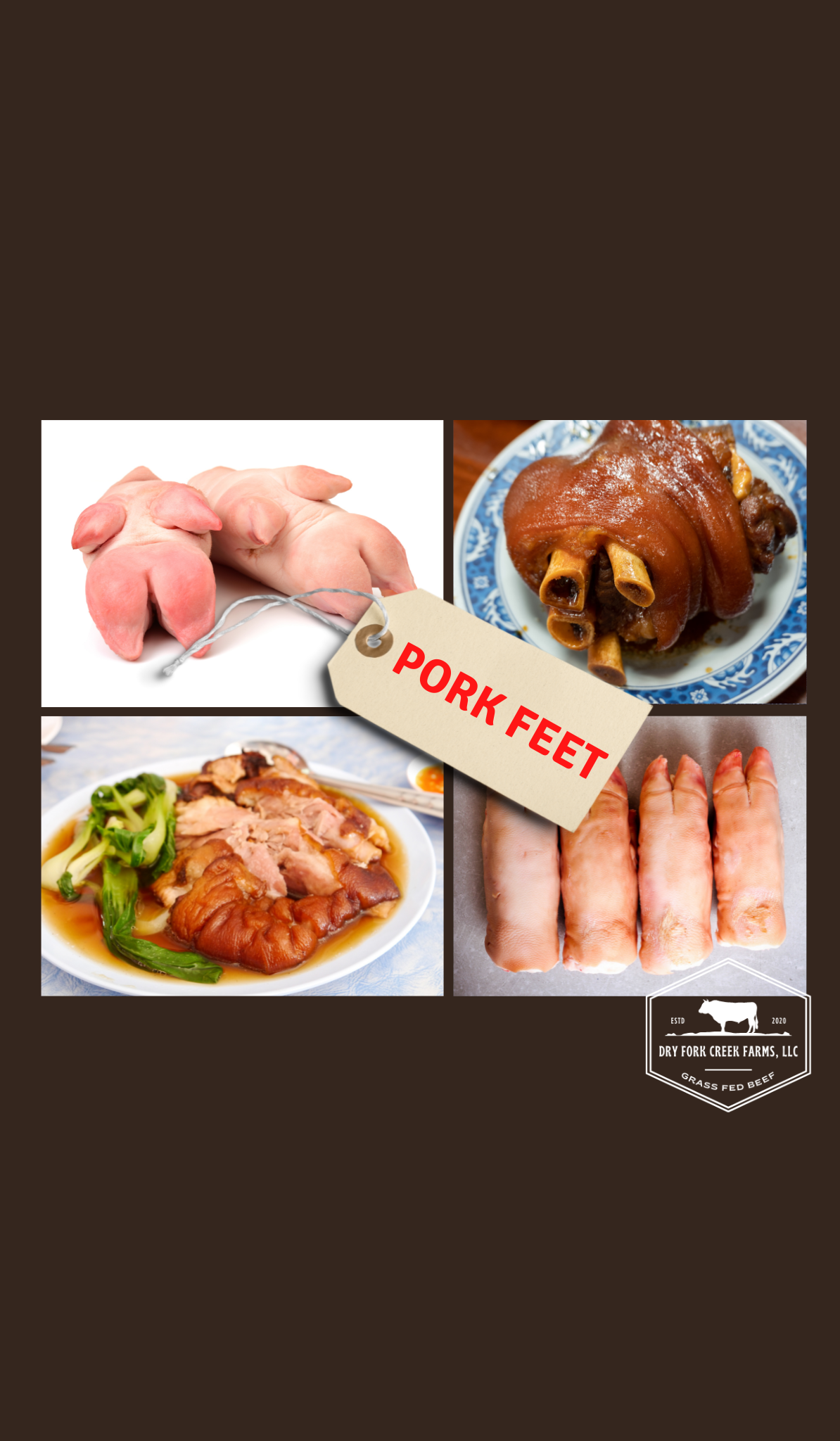 This is a 20+ pound Pastured Pork Feet Package of pasture raised pork from Dry Fork Creek Farms. The package fits in a standard size fridge/freezer combo (takes up about 1.75 cubic feet of space).